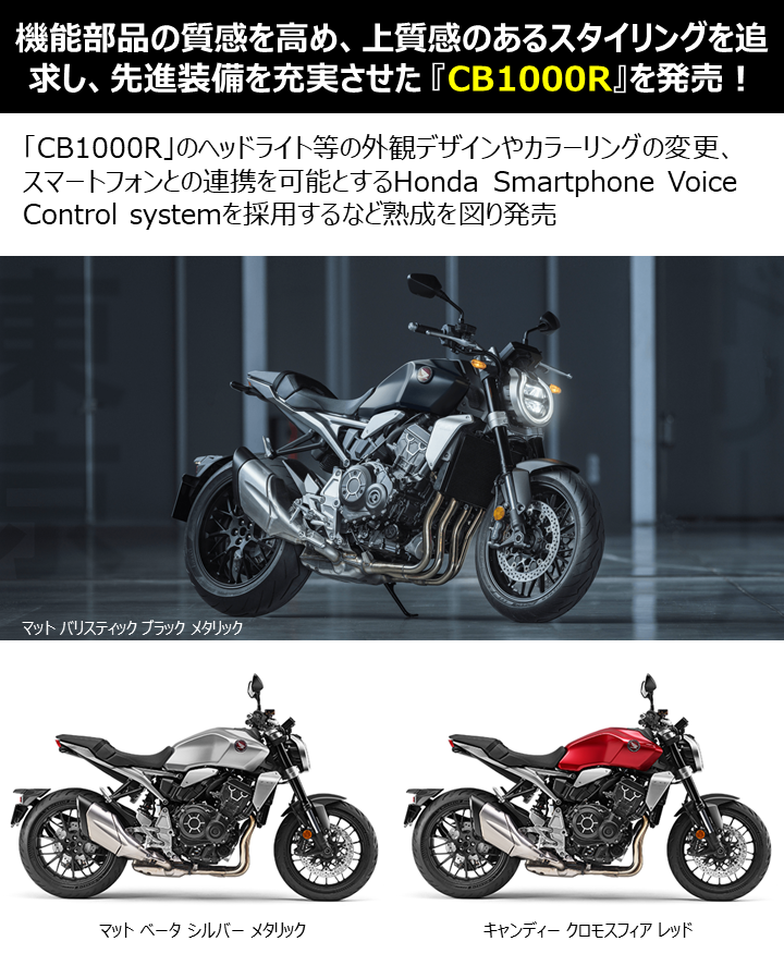 CAMPAIGN Kabuto ヘルメット チークパッドフィッティングサービス! MOVIE HondaDream鈴鹿 オフロードスクール紹介 NEW BIKE 「ADV150」に受注期間限定のカラーリングを設定し発売! NEW BIKE 「GB350」「GB350 S」新型ロードスポーツモデル GB350・GB350 S を発売! NEW BIKE 「フォルツァ」軽二輪スクーター フォルツァ をモデルチェンジし発売! NEW BIKE 「X-ADV」大型クロスオーバーモデル X-ADV をフルモデルチェンジし発売! NEW BIKE 「CB1000R」のヘッドライト等の外観デザインやカラーリングの変更など熟成を図り発売! NEW BIKE 「NC750X」大型スポーツモデル NC750X をフルモデルチェンジし発売! NEW BIKE 「CB1300 SUPER FOUR」「CB1300 SUPER BOL D’OR」ならびに「CB1300 SUPER FOUR SP」「CB1300 SUPER BOL D’OR SP」に先進の電子制御デバイスを採用し発売! NEW BIKE 大型クルーザーモデル「Rebel 1100」を新発売!! NEW BIKE よりスポーティーなイメージを強化『CBR650R』を発表! NEW BIKE Neo Sports Caféシリーズのミドルクラスモデル『CB650R』を発表!
