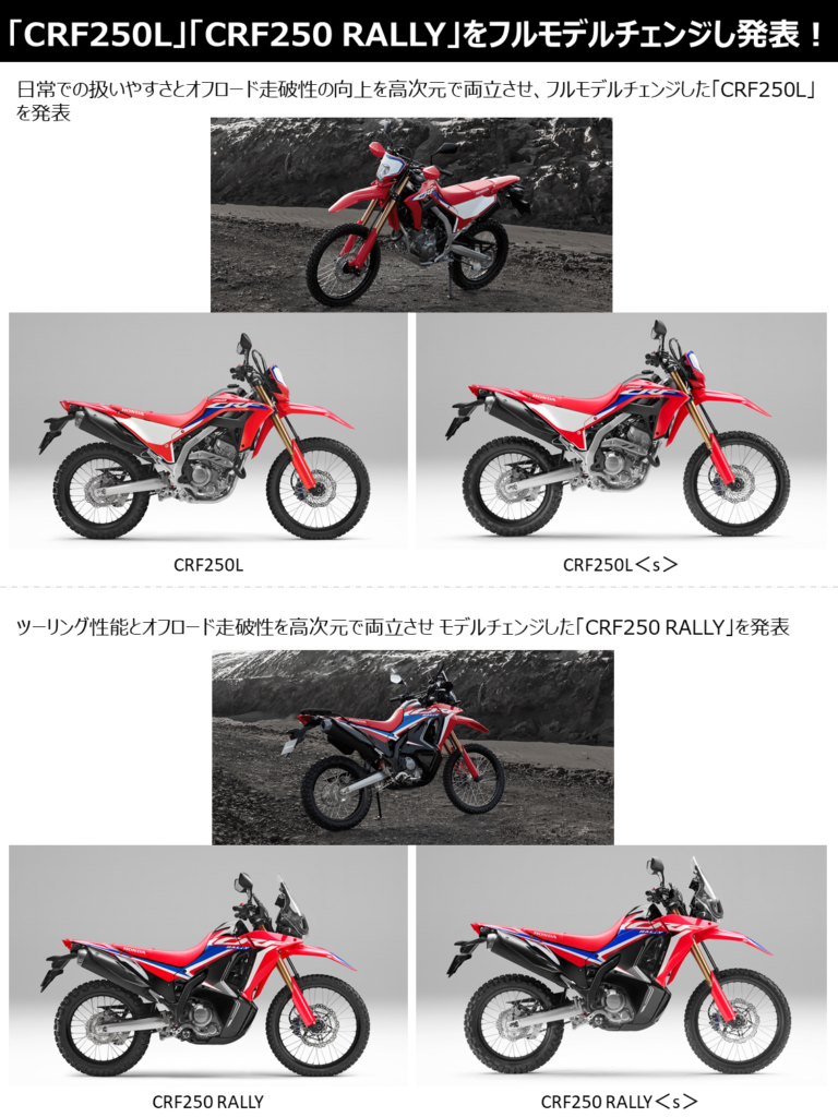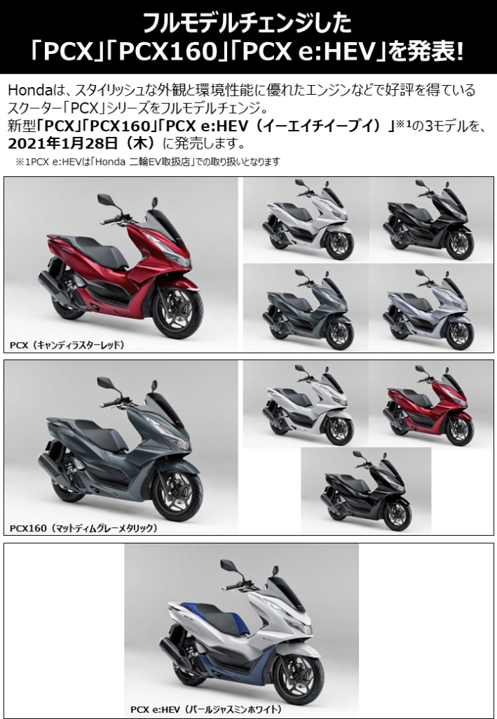 NEW BIKE フルモデルチェンジした 新型「PCX」「PCX160」「PCX e:HEV」を発表! NEWS 国内販売を予定するグローバルモデルがHondaバイクWebサイトで公開されました! NEW BIKE 「CRF250L」「CRF250 RALLY」をフルモデルチェンジし発表!